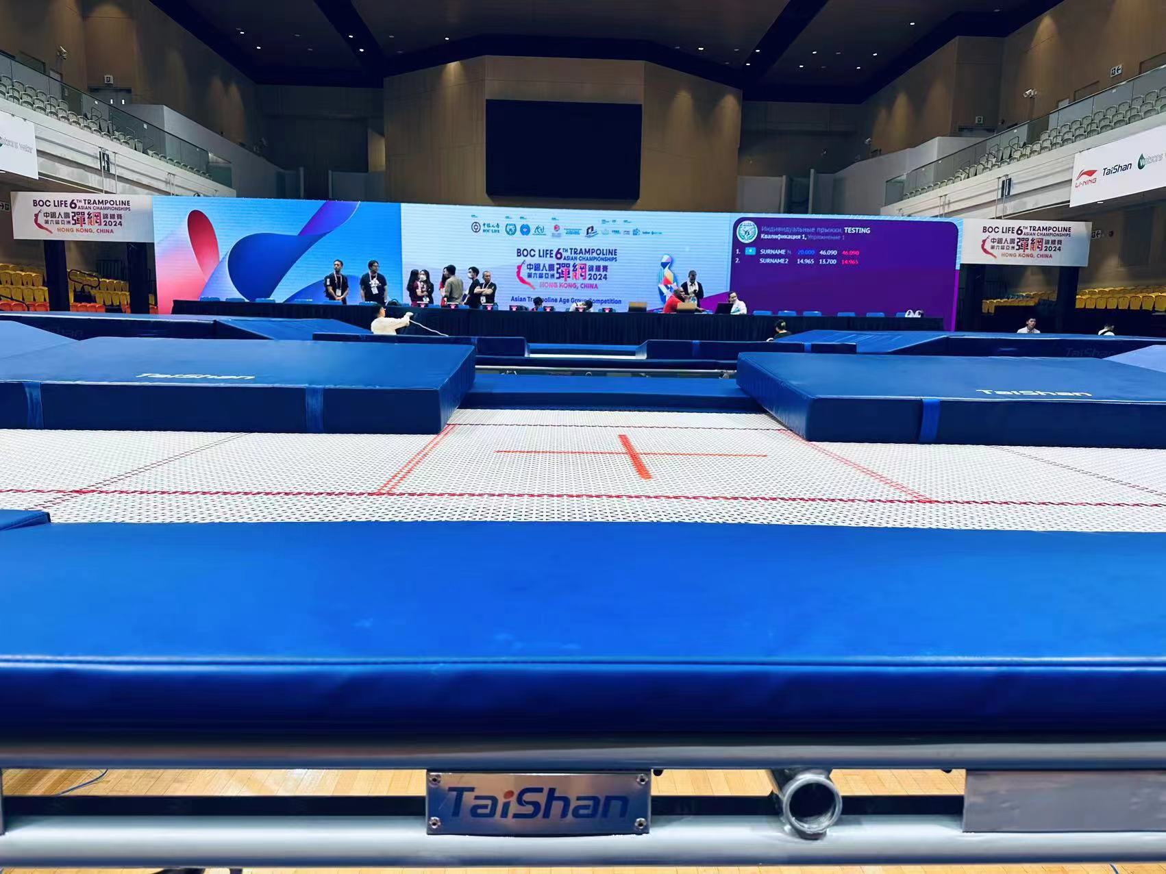为服务好本届蹦床锦标赛,米兰·(milan)中国官方网站体育保障人员严格按照赛事服务手册开展工作,从场馆的规划布局、器材的安装调试、标准高度的校准、过程巡检等各个环节,一丝不苟、严谨细致,确保蹦床器材安装的准确无误,始终践行国际赛场上的中国标准,见证米兰·(milan)中国官方网站体育全领域规划、设计、制造、集成、运营、服务一站式解决方案的发展理念。