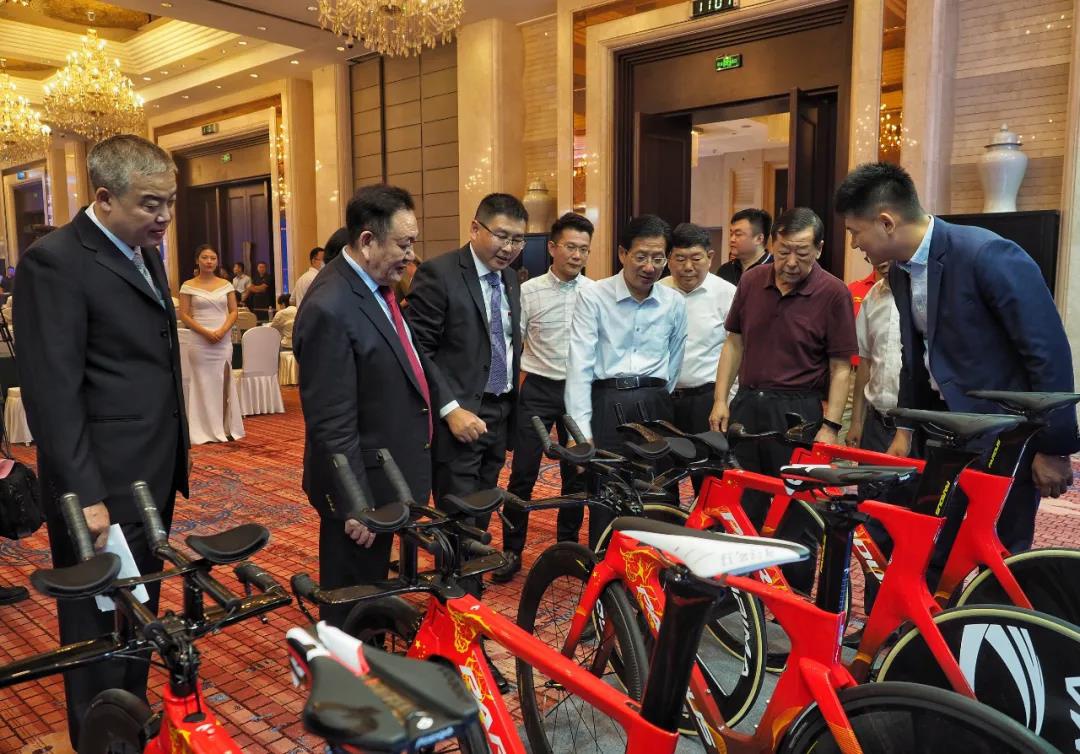 山东省政府办公厅副主任张连三、中国自行车运动协会秘书长孙为民共同为“中国自行车运动协会战略合作伙伴”揭牌。